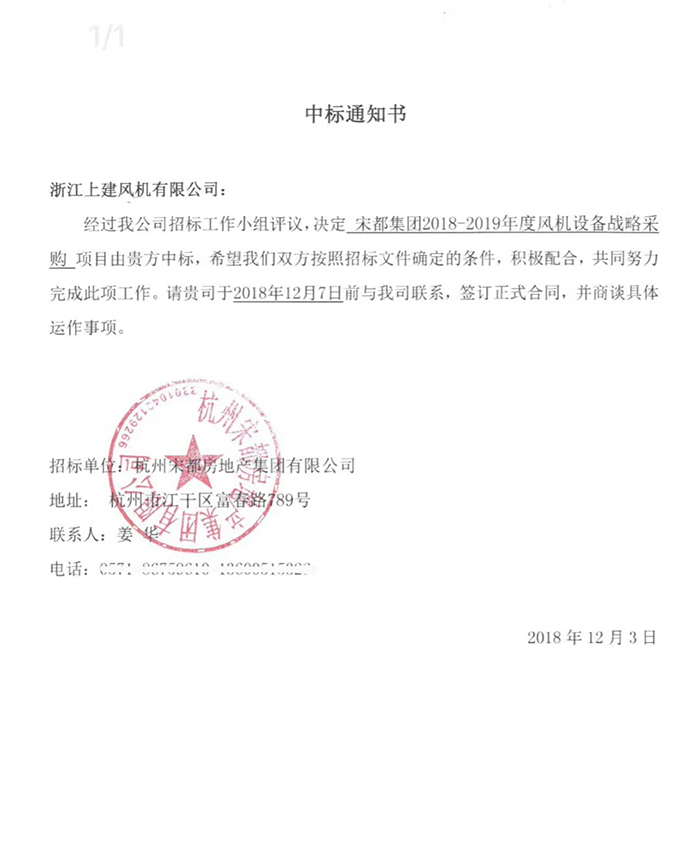 继成功入围中国百强房企业——华鸿地产集团战略供应商后,今天公司又迎一大喜讯,在宋都集团组织的战略集采招标活动中今年会杀出重围,成功成为宋都集团2018~2019年度风机战略供应商,为我司在品牌战略拼图上增添了浓重的一笔,也为今年会后期的可持续发展推波助澜。