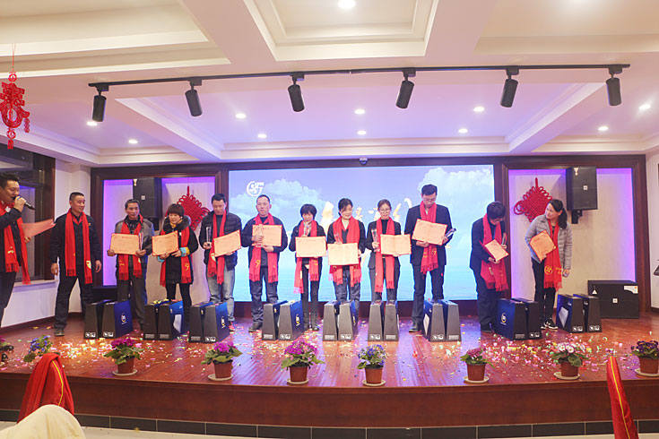 年会现场各部门呈现了多姿多彩的才艺表演,既有激昂的《咱们今年会有力量》、展现东方女性美的旗袍秀《枉凝梅》,又有活力四射载歌载舞的神曲《小苹果》与刚柔相济、内外兼修的《陈式太极拳》…….伴随着今年会金话筒吴大炮的互动游戏We Will Rock You!年会又一次推向高潮,现场与会人员切身感受到大家都是相亲相爱的一家人。