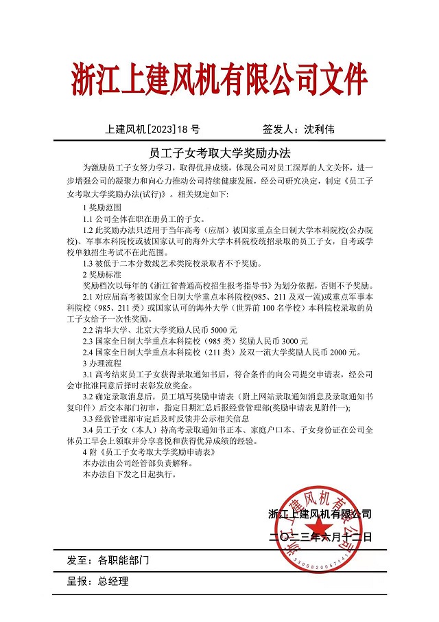 此项奖励的目的是为了激励员工子女勤奋学习、积极进取,回报父母,报效社会,充分展示了公司以人为本、关爱员工、重视教育、鼓励上进的良好风尚,得到了广大员工积极拥护。公司表示将一如既往地对公司员工力所能及的帮扶和资助。