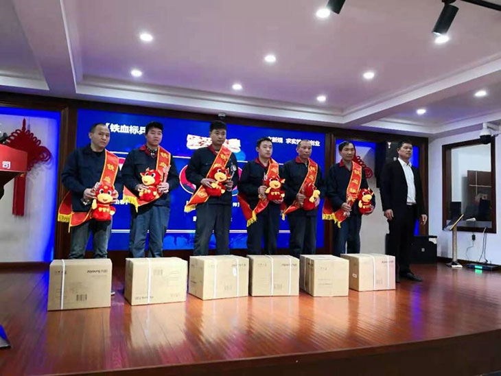 下午一时许,会议在2020年大事记回顾视频播放中拉开帷幕。首先由经营管理部负责人对2020年度的工作做了全面的总结与回顾,把不足之处进行了概括和分析。并在2021年度工作要求中对20年的不足之处进行了具体改进作了明确要求。随后,在我们吴大炮先生主持人幽默而又庄重的宣布下,一一揭晓了我们2020年度公司各项先进个人和团队,共有47位员工获得了“铁血标兵”“设备美容师”“铁面判官”“三八红旗手”“服务之星”“品质守护奖”等荣誉。箱体车间团队和产销管理团队分别获得了“价值贡献奖”和“卓越管理奖”两个集体荣誉。个人先进在获得公司表彰后并奖于每人价值1000元电饭煲一只,团队获得公司颁发的奖金。获奖个人与团队大家纷纷发表了感言,感谢公司在自己平凡的工作岗位上所付出的每一份努力得到了肯定和认可,也再次表示在工作上会再接再励。
