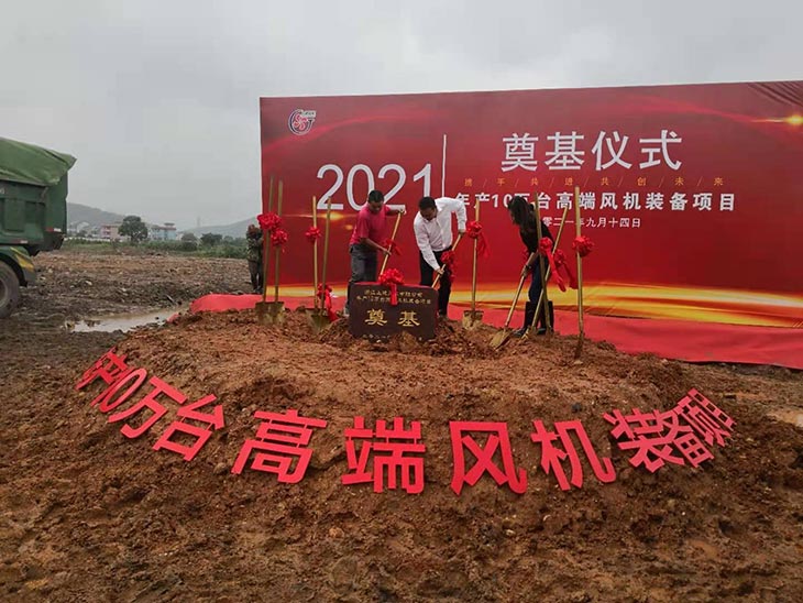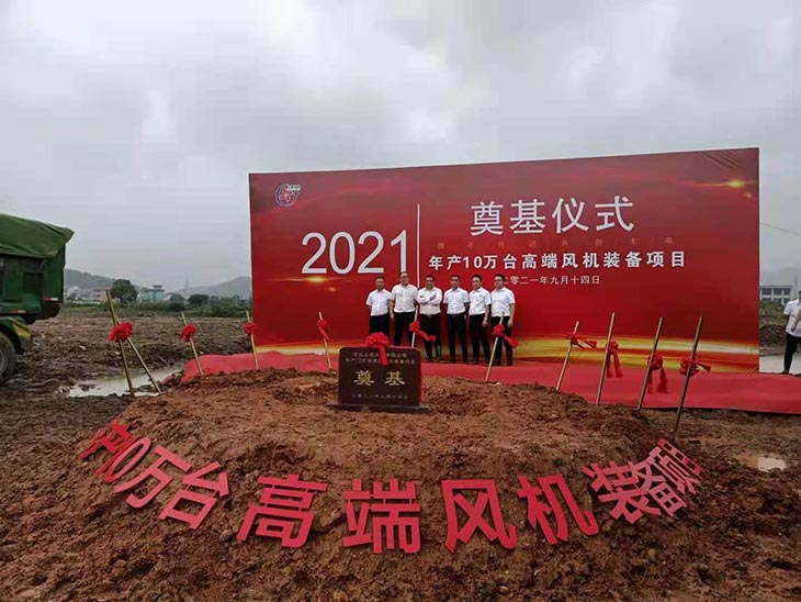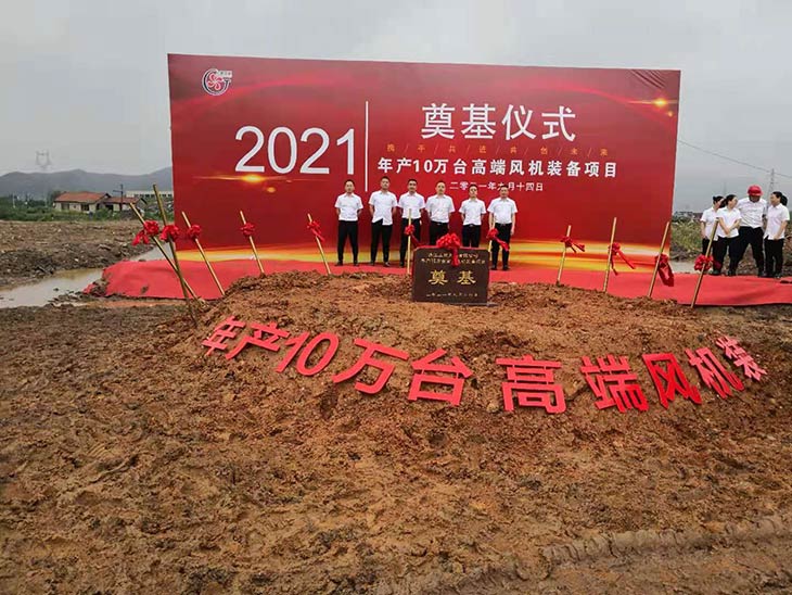 2021年9月14日上午,浙江今年会风机有限公司年产10万台高端风机项目奠基仪式在绍兴市上虞区丰惠新城开发区建设基地简约而不隆重的举行。在公司董事长兼总经理童海标带领公司经理级以上全体管理者共同参加了本次仪式。