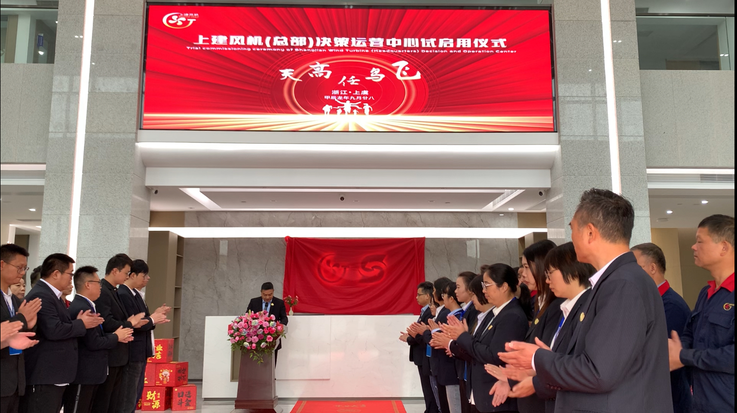 随后,在现场全体员工见证下和热烈的掌声中,董事长携手其夫人共同为运营决策中心进行了揭幕,大家共同举杯,致敬过往的携手共进,更愿未来与大家相互扶持、彼此成就,现场气氛在这一刻被推向高潮。